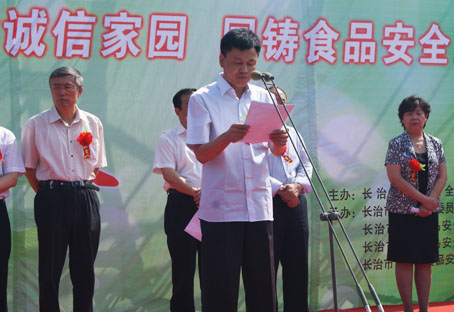 2012年6月11日至17日被确定为今年的全国食品安全宣传周,我市宣传周主题为推进“久安工程”,共建和谐家园,同铸食品安全,活动在城隍庙广场隆重举行。长治市食品安全宣传周启动仪式由长治市食品安全委员会主办,长治市食品安全委员会办公室、长治市城区食品安全委员会、长治市郊区食品安全委员会、长治市高新区食品安全委员会协办。食品安全是关系着人民群众的身体健康和生命安全、经济健康发展、国家安定和社会发展与稳定的重大问题。我市相关部门就加强食品安全工作采取了一系列重大举措,各地区、各有关部门作出了不懈努力,全市食品安全总体状况正向好的方向发展。