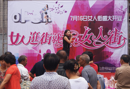 2012年7月16日,长治市城隍庙广场西内街—女人街商场隆重开业,女人街是长治乃至上党地区第一家以时尚女性为主题的小型商场,致力于打造上党地区营业时间最长的一站式女性消费场所,女人街优美舒适的购物环境将为长治的女性朋友们提供逛街购物新天地,从此,长治的时尚女性们不用再为无街可逛发愁了。女人街开业活动将从7月16日持续至8月15日,多重惊喜送给长治市广大市民。