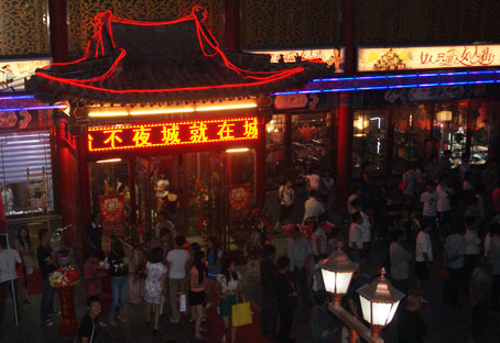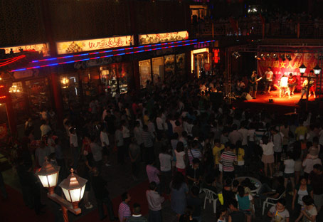 城隍庙广场女人街开业活动——末指传媒专场,活动以《红歌翻唱》为主题,活动现场人头攒动,一派热闹非凡的开业喜庆气氛,以“女人逛街就逛女人街”为主题的开业活动吸引了无数以时尚女性为主的顾客。排成数十米长的队伍正在领取“万份礼品全城送”的精美礼品,在抽奖现场,不时传来顾客中大奖时的惊喜叫声,还有不少人正忙着填写资料,现场更有不少时尚一族对着女人街宣传海报找商铺要心动折扣,全市的时尚一族女性可谓玩转女人街。