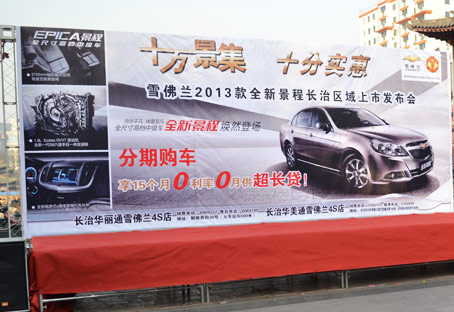 2012年11月18日,由长治市华丽通汽车销售服务有限公司主办的雪佛兰2012款全新景程长治区域上市发布会在城隍庙广场宏门东侧成功举办。