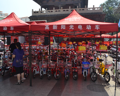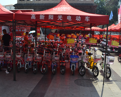 “ 倡导时尚单车 享受阳光生活”高新阳光电动车,全国特卖会8月10日--8月11日,在城隍庙广场宏门西侧举办为期两天宣传活动。本次活动主要推出以旧换新为主,根据车型给予不同的折扣让利,活动现场,不少市民都来进行兑换。这次活动更是为答谢新老顾客,为大家带来了物美价廉的款式各异的电动车。