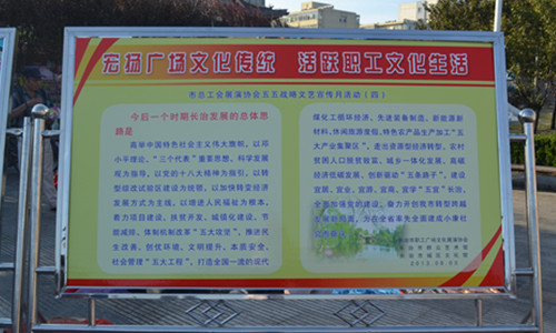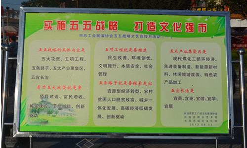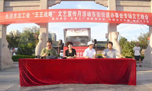 2013年8月19日,长治市总工会在城隍庙广场举办了一场“五五战略”文艺宣传月活动东街街道办事处专场文艺晚会。东街街道办事处各领导出席晚会现场,领导代表作出了重要讲话。通过晚会各种形式的表演来诠释“五五战略”的核心思想和主要内容。大家不仅容易理解“五五战略”而且还加深了印象。