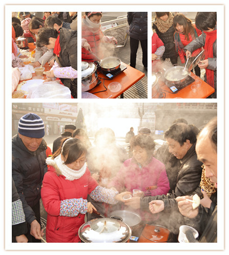 2013年12月20日上午,山西安居乐业物业管理有限公司员工与东街街道领导和居民在城隍庙广场如意桥上举办的“情满社区 爱在冬至”献爱心包饺子活动。如意桥上不时传出欢声笑语,现场气氛热烈,大家自愿结合、分工协作,飞快而熟练地包出一个又一个漂亮的饺子,经过大家团结合作、齐心协力把共同包好的饺子纷纷送到居民和广场人们手里。此次活动让大家提前感受到了冬至的气氛,并且让大家感受到了冬日里的一丝温暖。