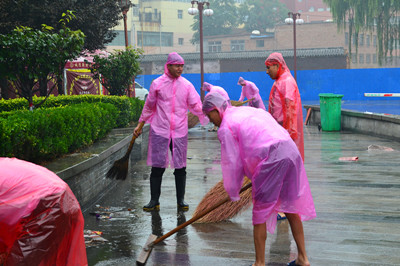 日,城隍庙广场为迎接长治市卫生城市复审,营造良好的广场环境,对城隍庙广场进行了彻底的清扫。全体员工冒雨参与到清扫工作中,为长治市卫生城市复审工作贡献一份力量!