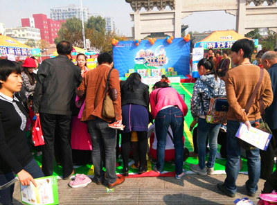 妈妈好孩子2014年10月18日于城隍庙广场中央举行大型宣传活动,活动现场分为产品展示区、儿童游戏区两大区域。活动迎来了众多“超级Q宝”的参与,“Q宝”们的逗趣游戏也引来了路人的驻足鼓励,场面甚是壮观热闹,活动也得到了很好的宣传与推广。