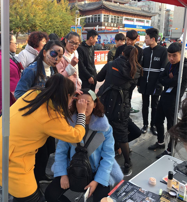 城隍庙广场作为长治不夜城自然成为万圣节活动的聚集地,雅典娜彩妆培训机构与美的长治旗舰店共同在广场上演了一场捣蛋计划,化着各种怪异恐怖妆容的人群行走在城隍庙广场的大街小巷,就连女人街内也是“鬼怪”们齐聚购物,整个广场好不热闹!