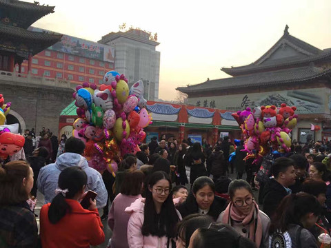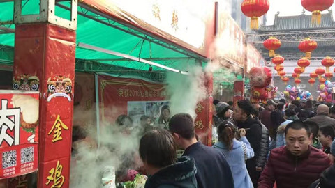 日农历初六,城隍庙广场民俗庙会人气不减,前来游玩的人群依旧爆棚。